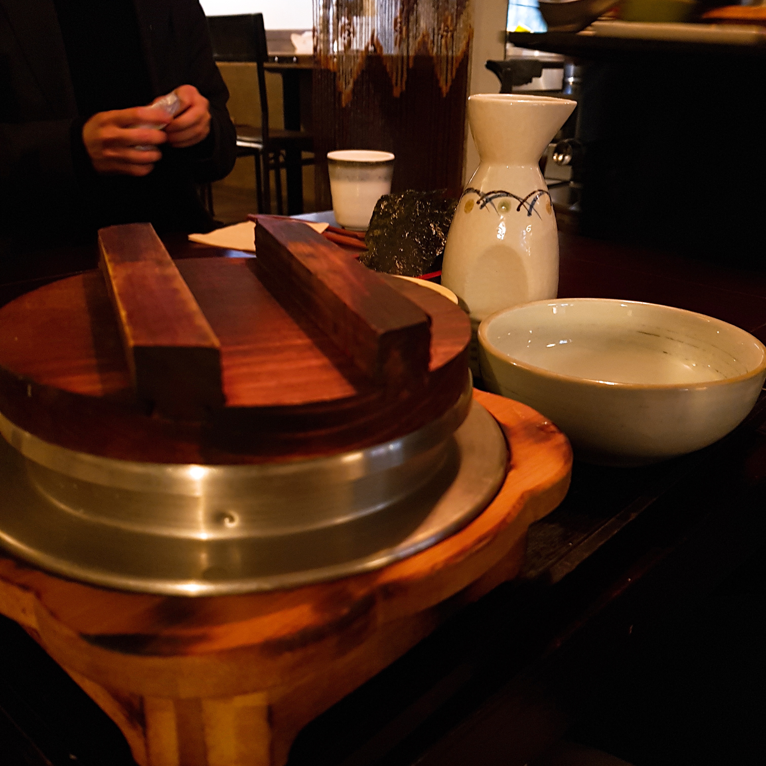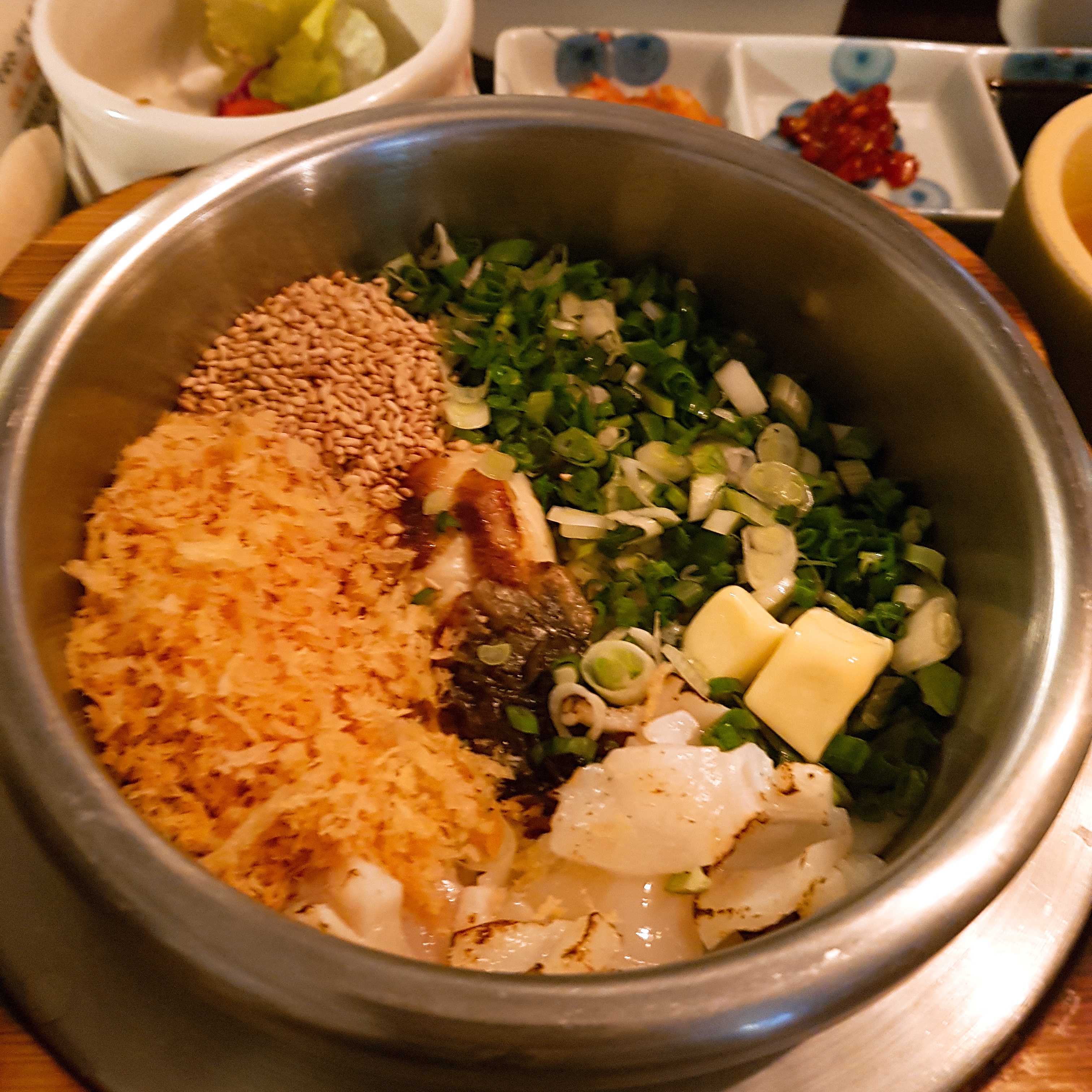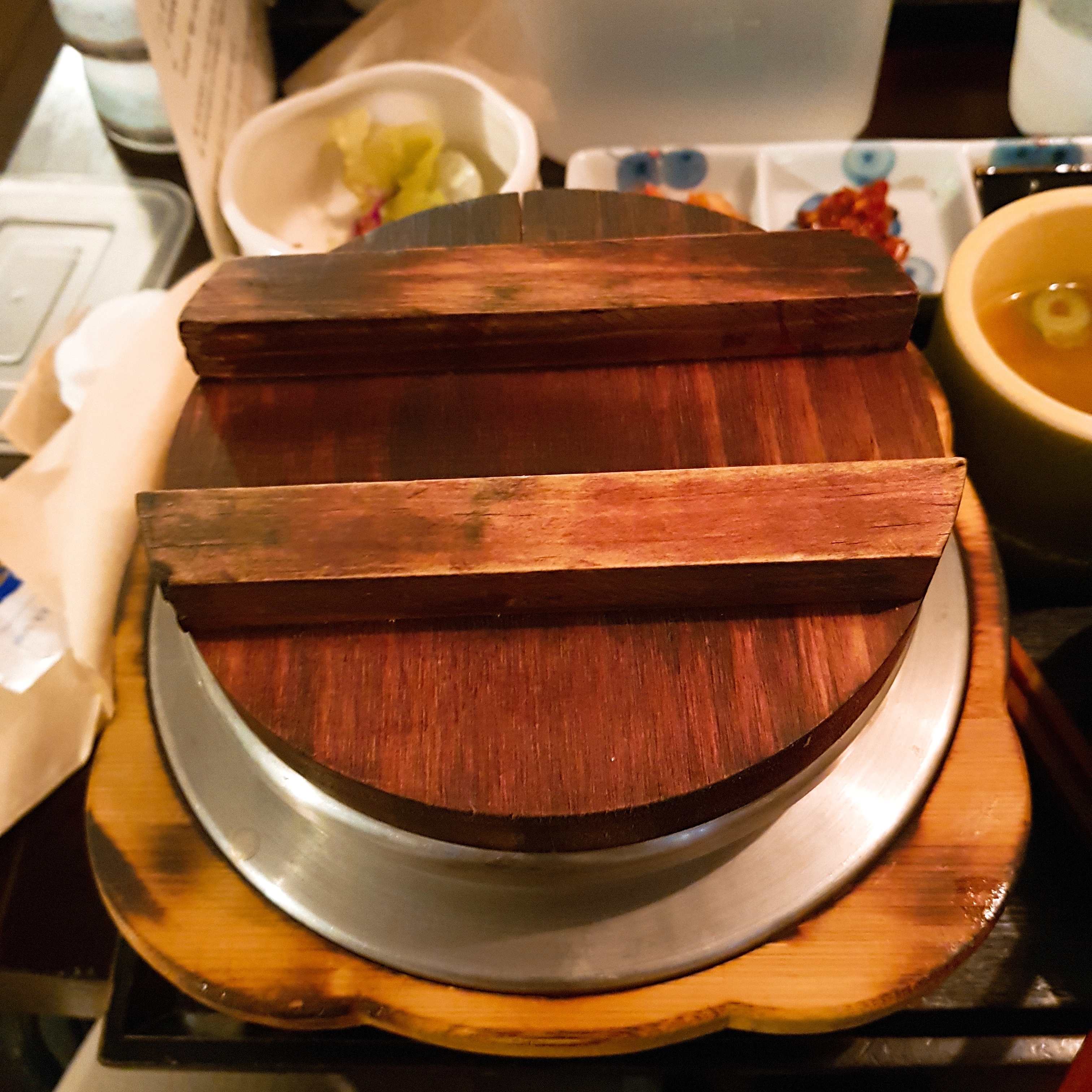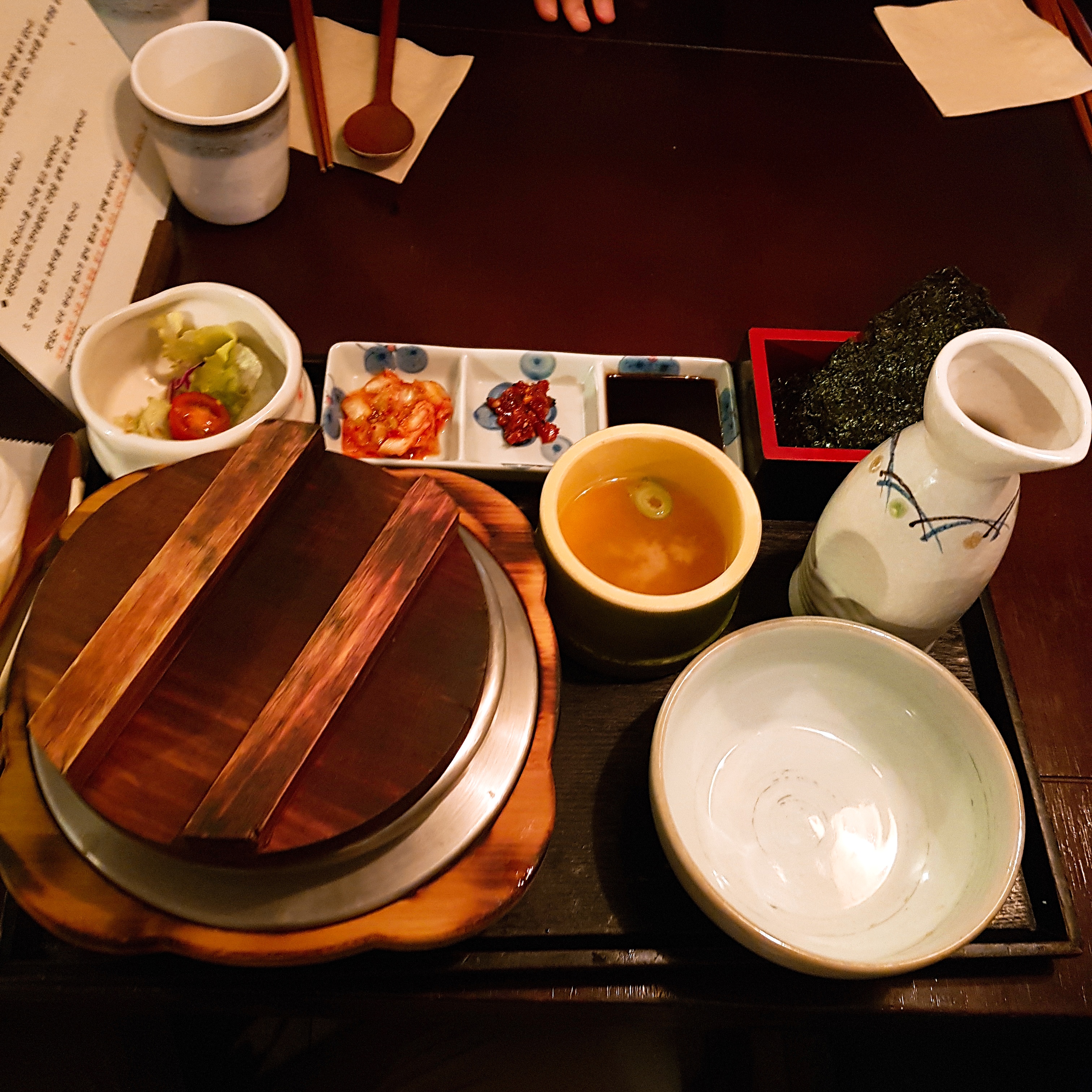 우리는 와규솥밥과 도미관자솥밥을 주문했다.