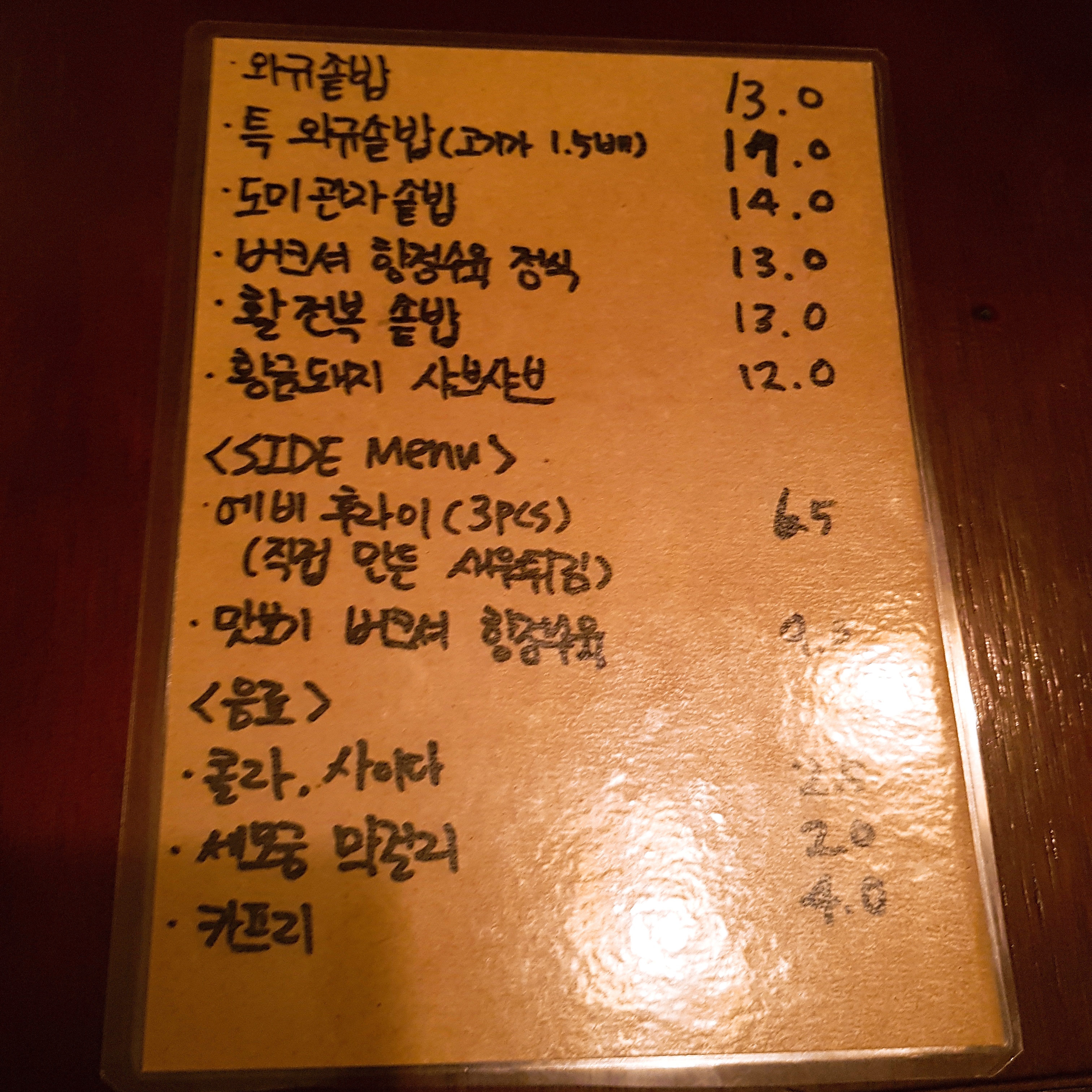 전체적으로, 간은 와규솥밥보다 세지 않았고 젓갈과 간장, 김에 싸서 먹을 때 간이 맞다.