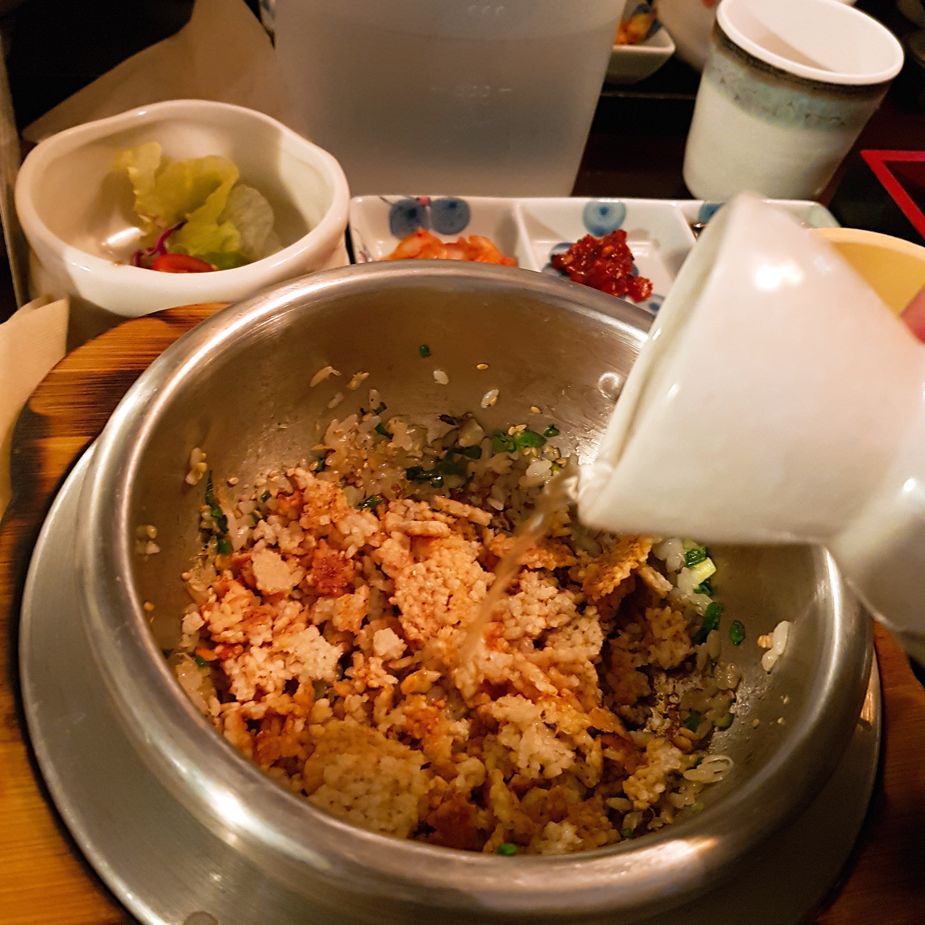 특제 육수를 넣은 누룽지는 맨 처음 먹을 때 '이게 무슨 맛이지?'라고 의문을 가질 수 있다.
