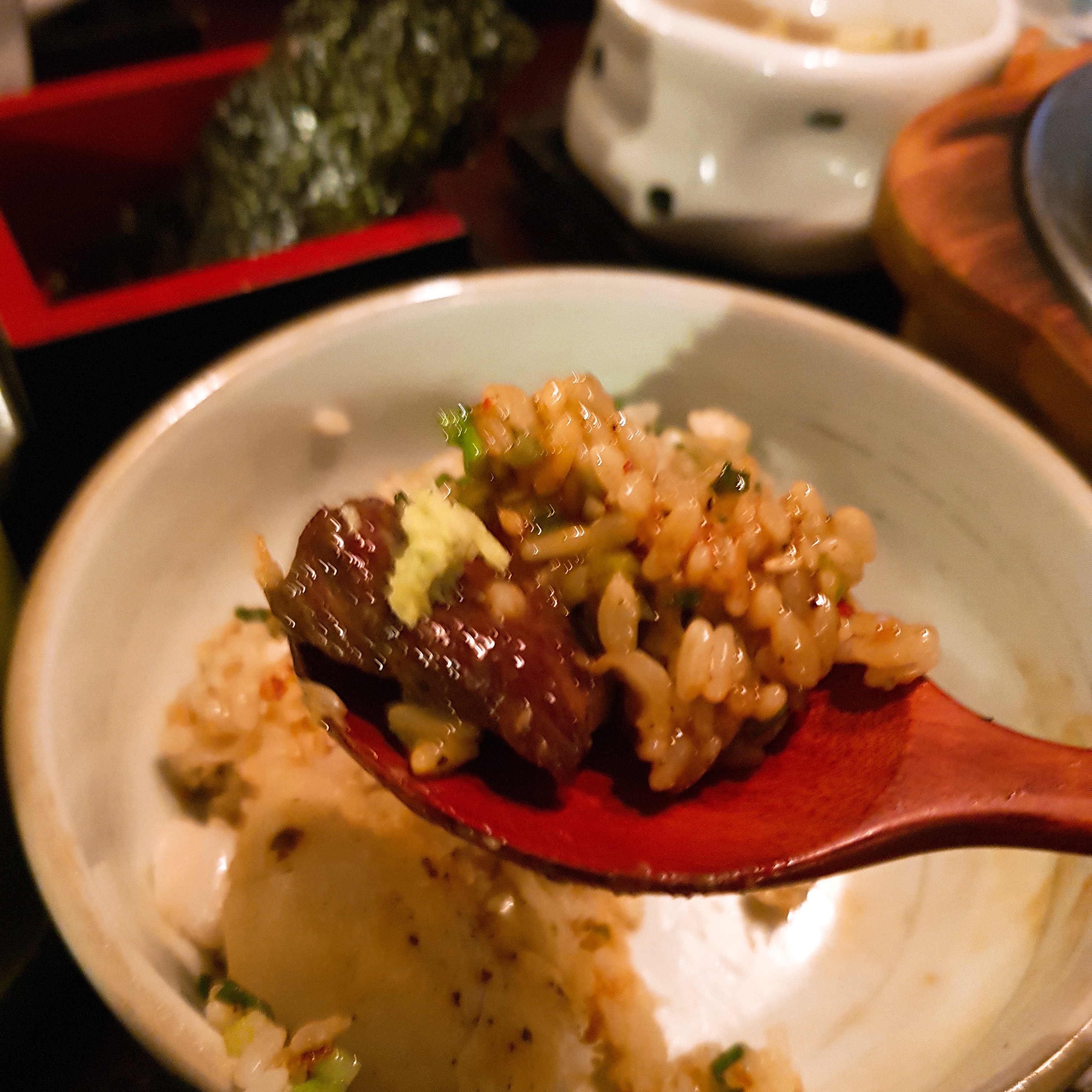 와규솥밥과 고추냉이를 같이 먹었을 때, 와규의 맛을 더 끌어올려줬고, 생고추냉이를 갈아 고급스러운 맛을 보여줬다.