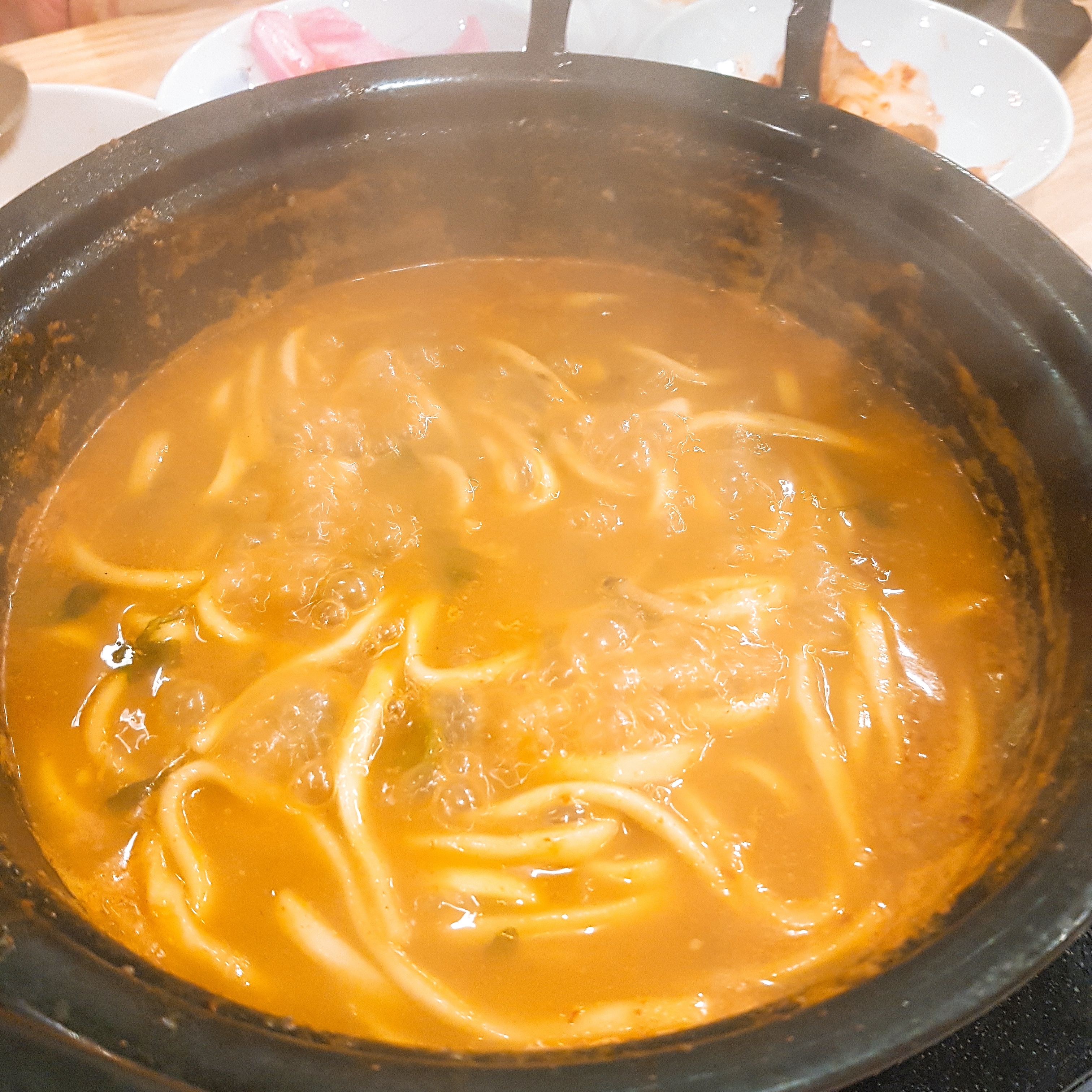 3. 야채와 소고리를 다 먹은 후에 칼국수 사리 넣어 먹기