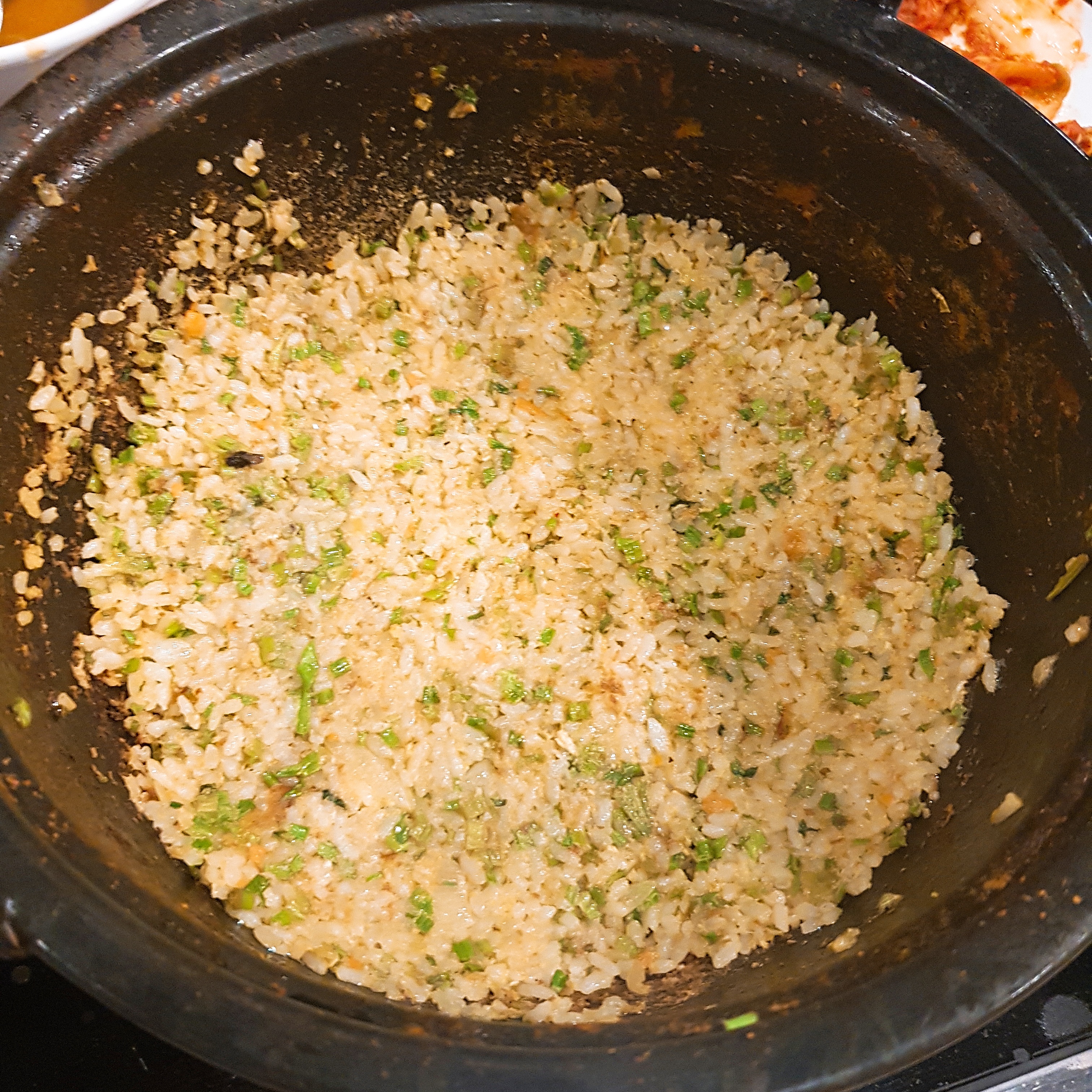 샤브샤브 육수로 만든 볶음밥을 먹고 싶었는데, 육수를 전부 뺀 후에 볶음밥을 해줬다.