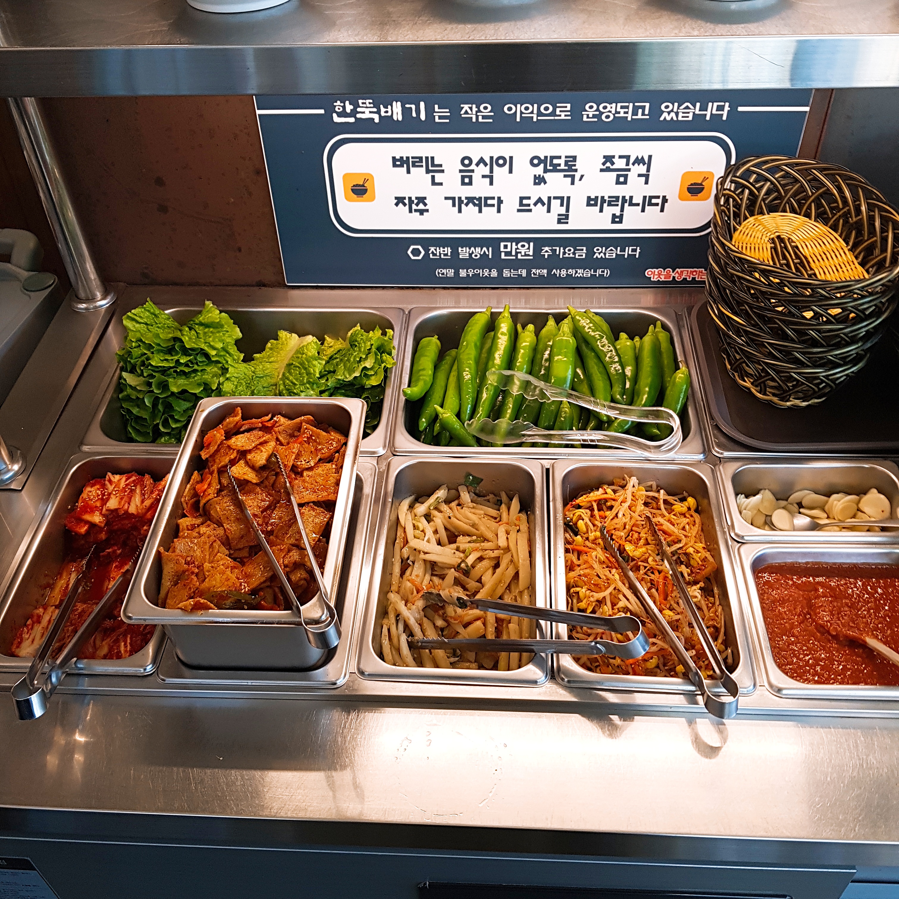 한뚝배기는 공기밥과 야채가 무한리필이다.