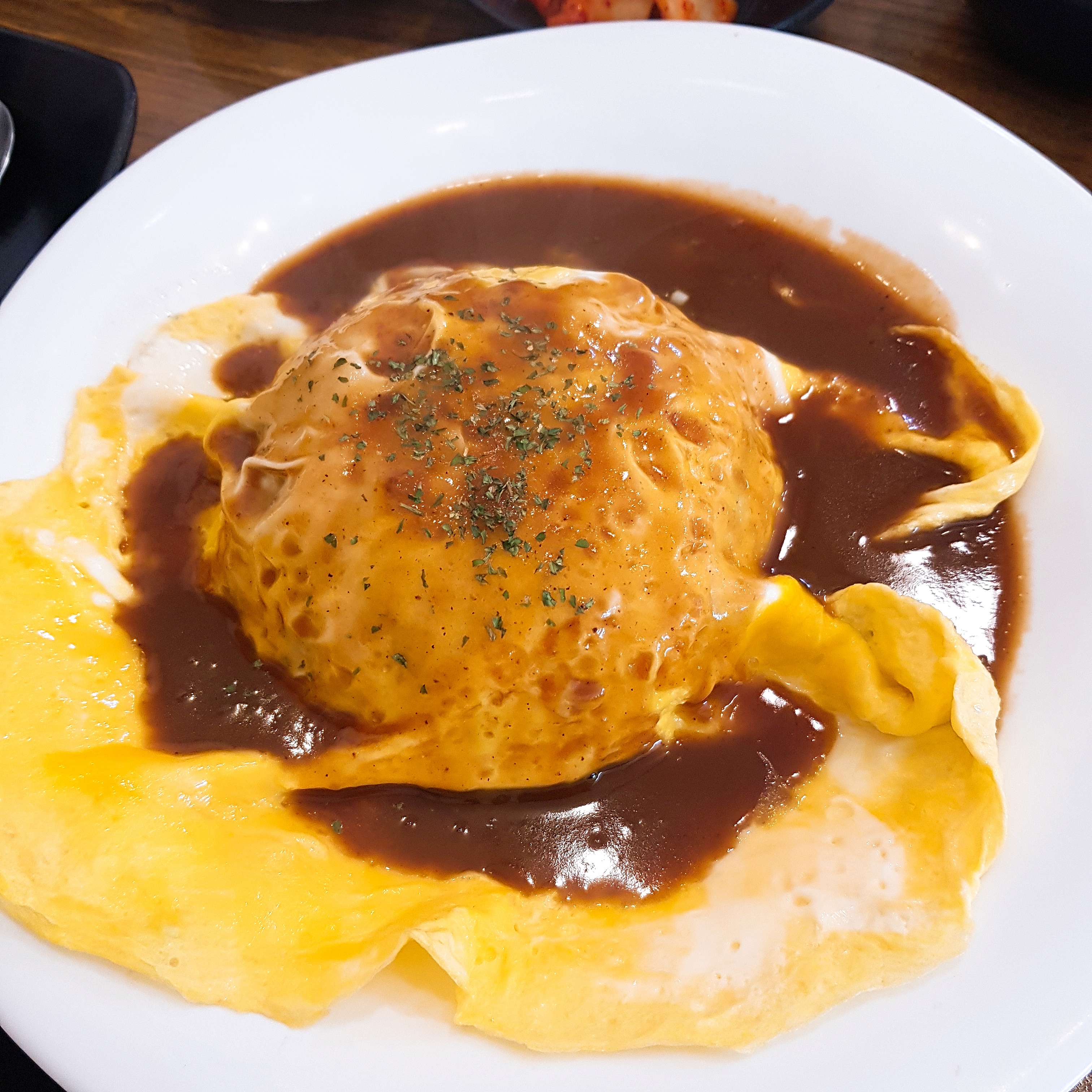 오므라이스의 밥은 간이 적당했고, 오므라이스의 계란은 치즈가 올라가 치즈의 풍미와 오므라이스의 약간 새콤한 소스가 잘 어울려 맛있었다.