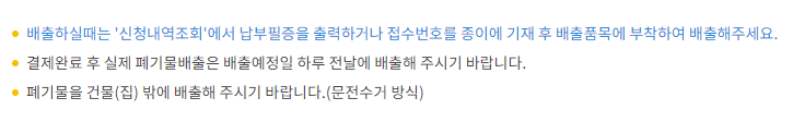 7. 결제 후 접수번호를 주는데, 해당 물품에 접수 번호를 종이에 기재하여 배출예정일 전날에 배출을 하면 된다.