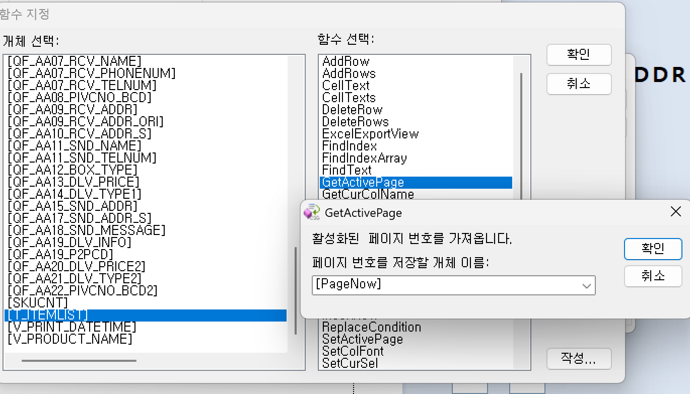 4. 버튼을 누르면, 해당 이지젠에 표준도표를 선택하고, GetActivePage를 누른 다음, 우측 하단의 작성을 눌러 GetActivePage를 한 값을 어디에 넣을 건지를 설정해 준다.