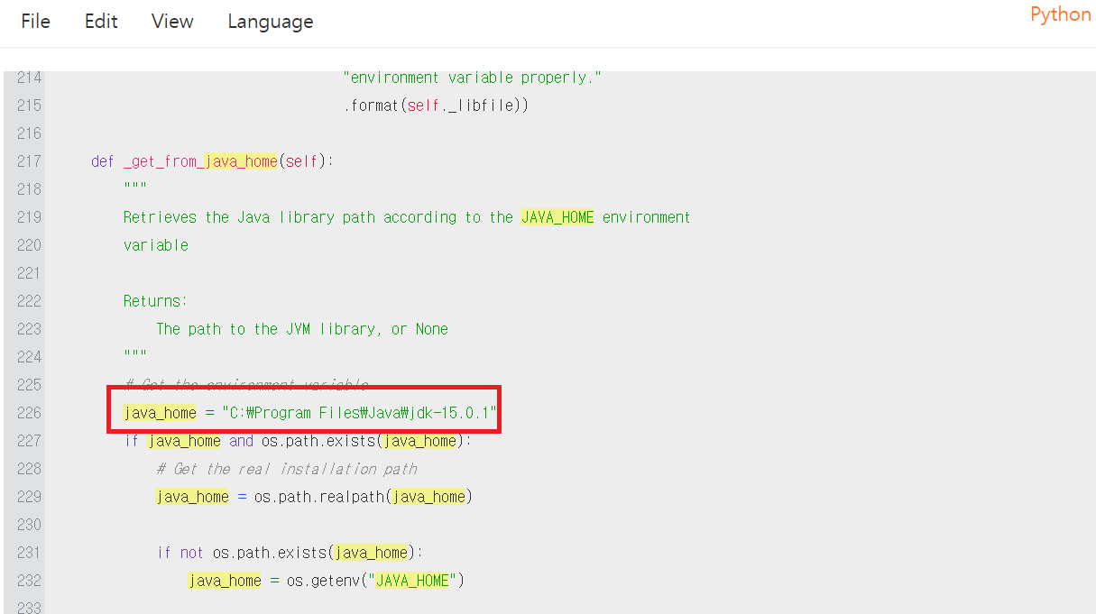 2. def _get_from_java_home(self) 함수에서 java_home 변수에 jdk 경로를 넣어준다.