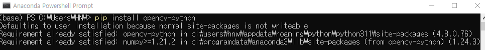 yolov8 버전과 같이 사용할 opencv-python도 설치한다.