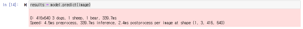 위에서는 416X640 사이즈 3개의 dogs와 1개의 sheep, 1개의 bear를 인식했다.